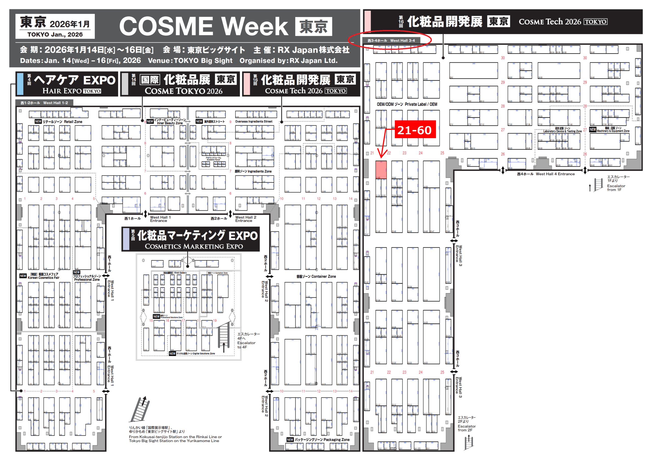 東陽化成ブース番号 西ホール 21-60 ※会場案内図で確認